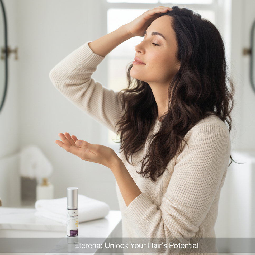 Transform your hair with Eternea Regrow Hair Serum. Rejuvenate your strands from dull and weak to vibrant, voluminous, and full of life. Give your hair the attention it deserves with this essential part of your daily routine.